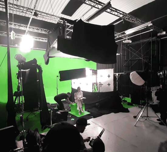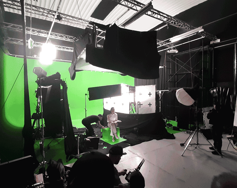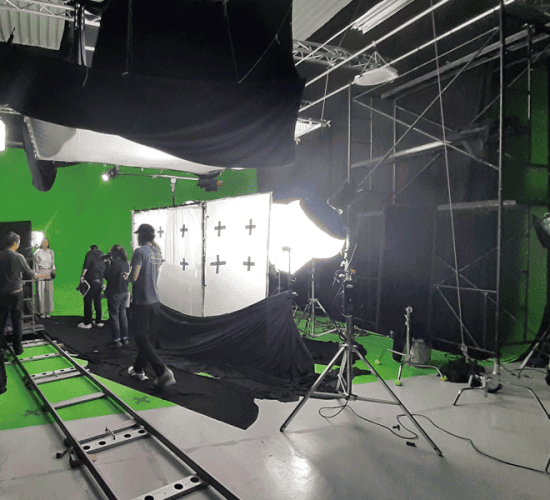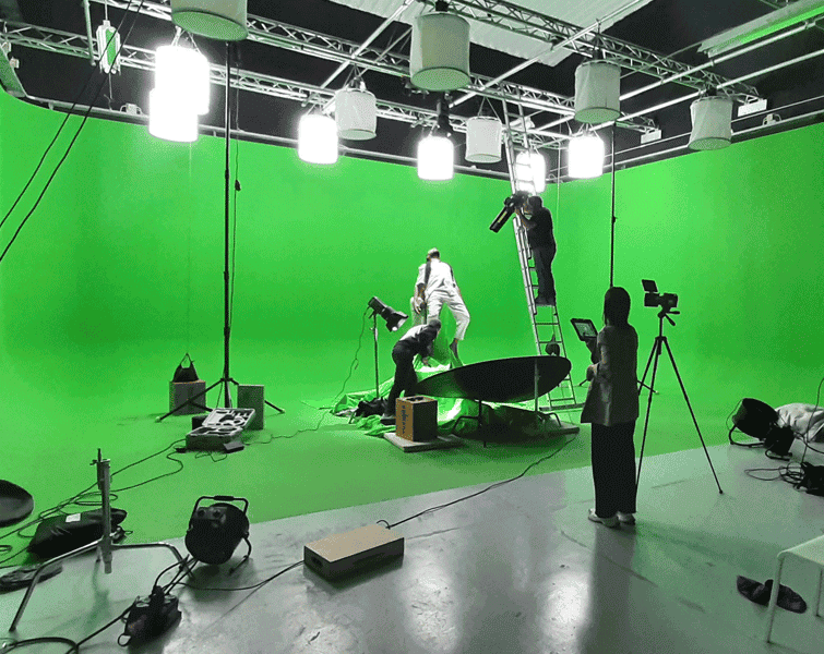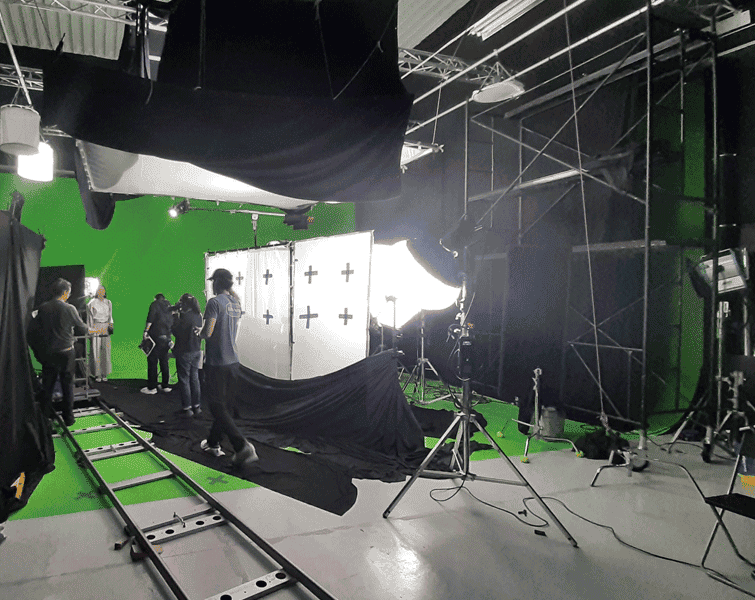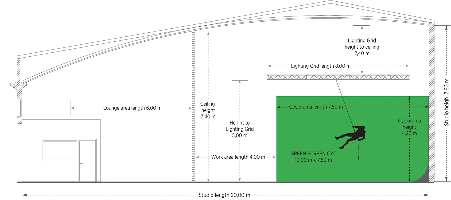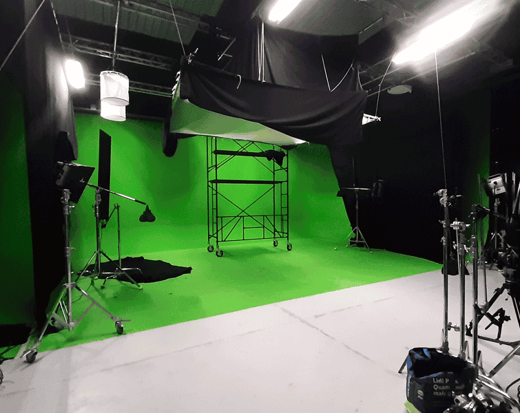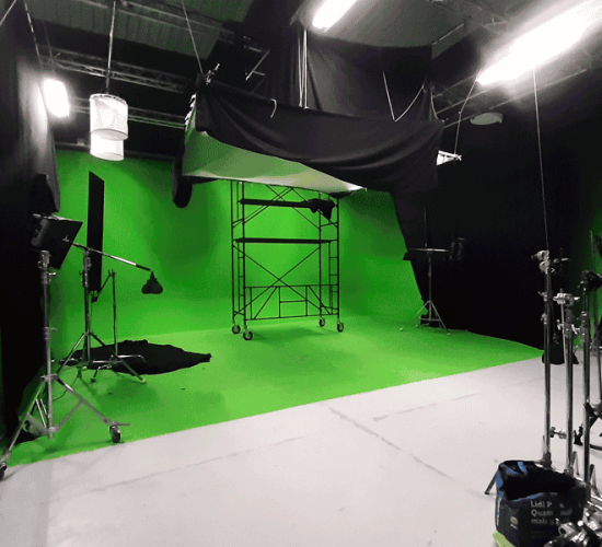 The Studio B is our Chroma Key stage with 160m2 of shooting space, a permanent green screen 3-wall cyclorama, pre-installed dimmable light setup. It is especially suited for VFX effects and allows for quick assembly of backdrops and other props.