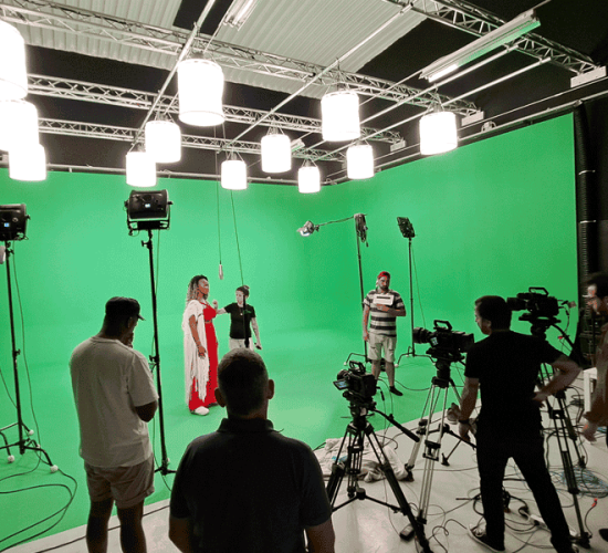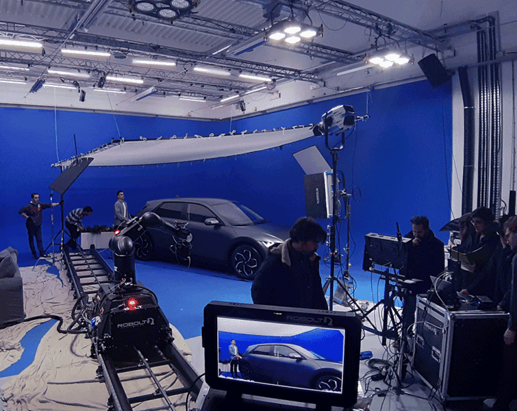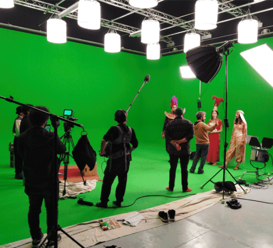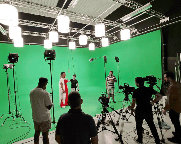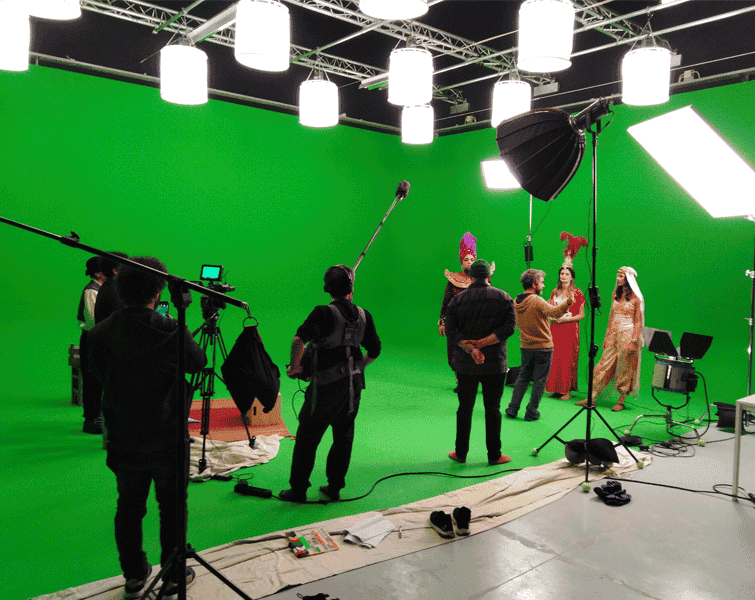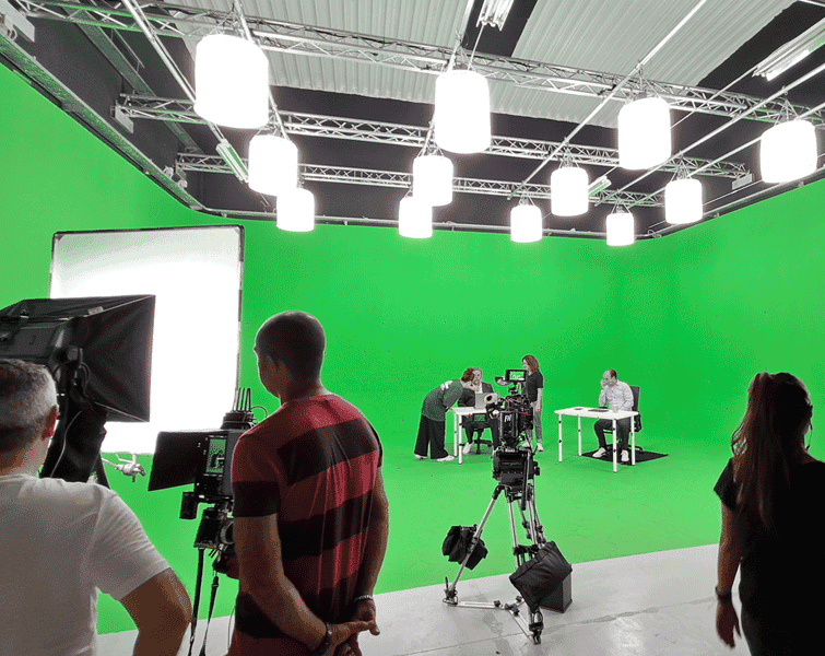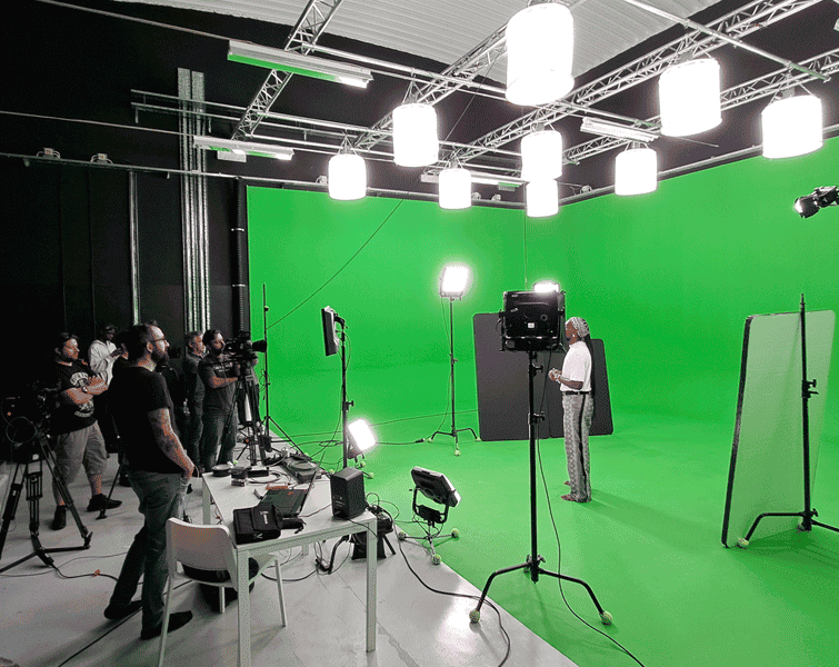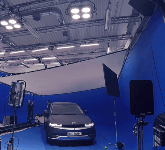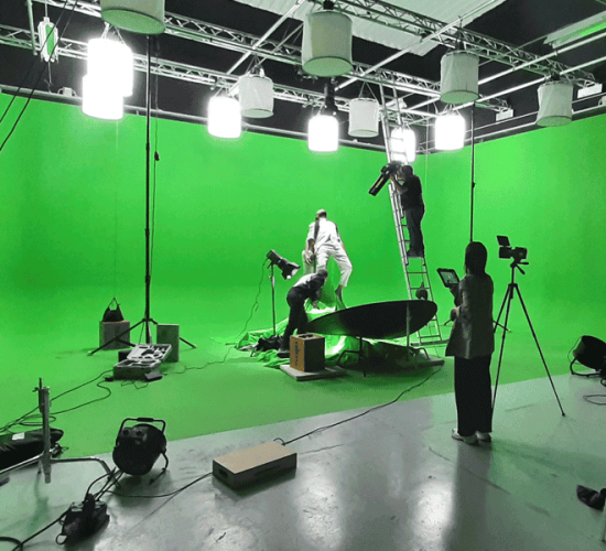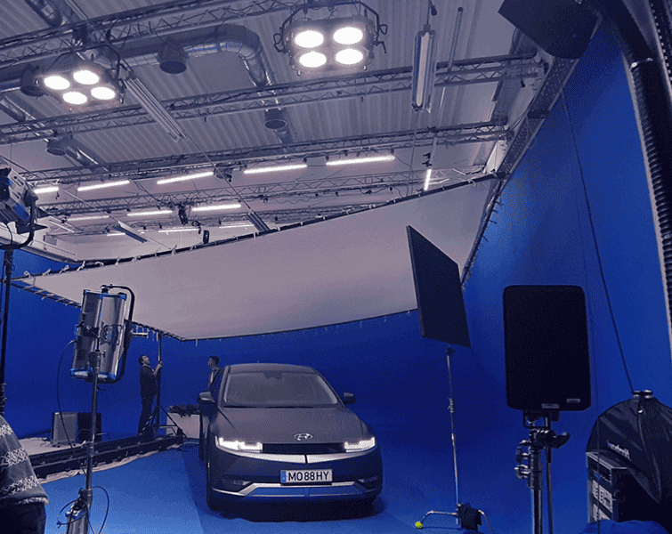 The Studio B is our Chroma Key stage with 160m2 of shooting space, a permanent green screen 3-wall cyclorama, pre-installed dimmable light setup. It is especially suited for VFX effects and allows for quick assembly of backdrops and other props.